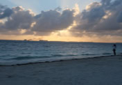 Isla Mujeres is the name of a small island, as well as the town on that island, a short distance off the coast of the northeast of the Yucatán Peninsula in the Caribbean Sea. Isla Mujeres is also one of the eight municipalities of the Mexican state of Quintana Roo. It is about 13 km northeast of Cancún. The island is some 7 km long and 650 meters wide. It has a population around of 15,000. Isla Mujeres is the first point inside of Mexico with the sunrise and subset.